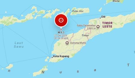 印尼东努沙登加拉省周一(27日)凌晨发生6.3级地震,暂无海啸威胁。