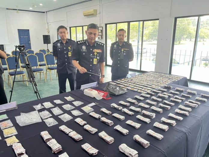 砂拉越警方肃毒组于廉律一商业店楼上租屋单位逮捕一对情侣,查获各类毒品及现金,总值50万9525令吉,足够供应1万4131名吸毒者使用。