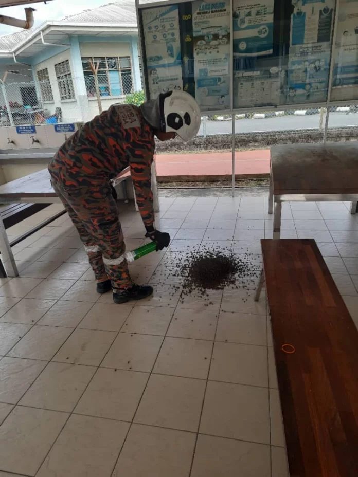 根据《诗华日报》报道27日6时许,美里罗东一所小学食堂被发现有蜜蜂筑巢,校方担心威胁学生安全,立即通报消防局。