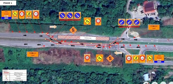 砂拉越公共工程局提醒司机注意安全,遵守施工区域的交通标志及行驶指示,并小心驾驶。