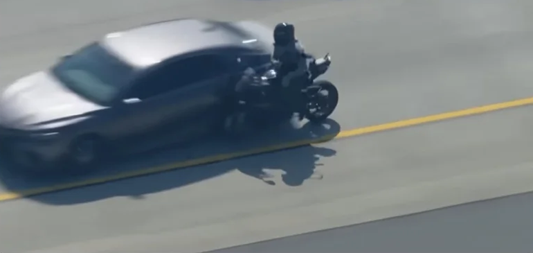 抢匪随后骑上摩托车逃离现场,并以时速超过170英里(约合273公里)在高速公路上狂飙。大批警方紧随其后,整个警匪追逐的惊险过程被《LiveNOW from FOX》空拍镜头记录下来。