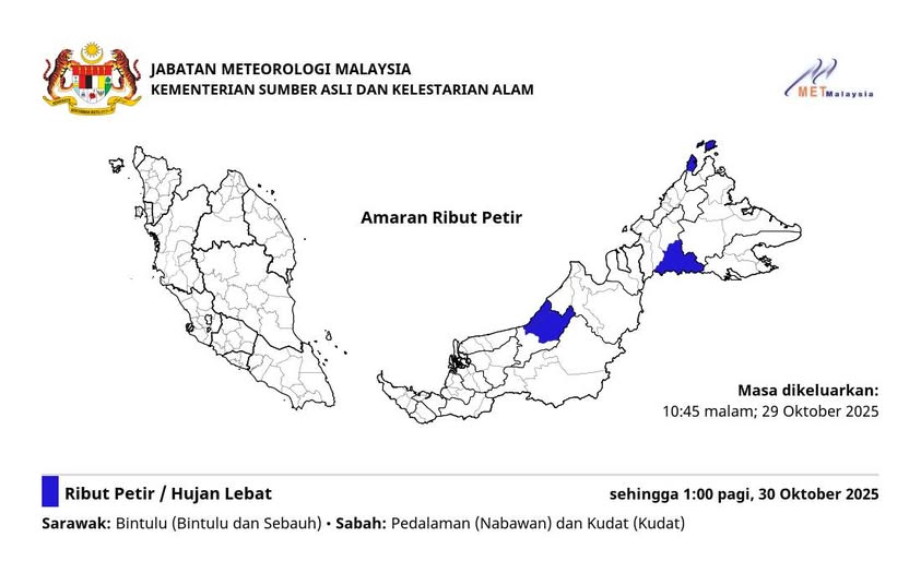 气象局指出,这项警报有效至10月30日(星期四)凌晨1时。