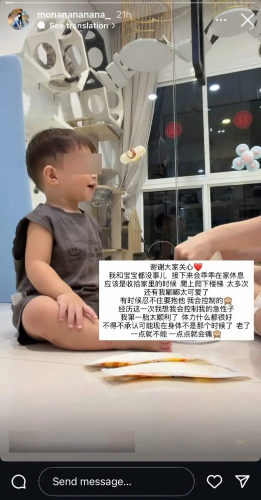 所幸经过检查后,医生证实母女平安,但 Mona 也被叮嘱要好好休息。她坦言,这次出血可能是因为自己太拼——“最近一直在收拾家里,爬上爬下太多次”,再加上她有时会忍不住抱儿子 dudu,“可能弯腰、起身太频繁,压到肚子里的宝宝了”。