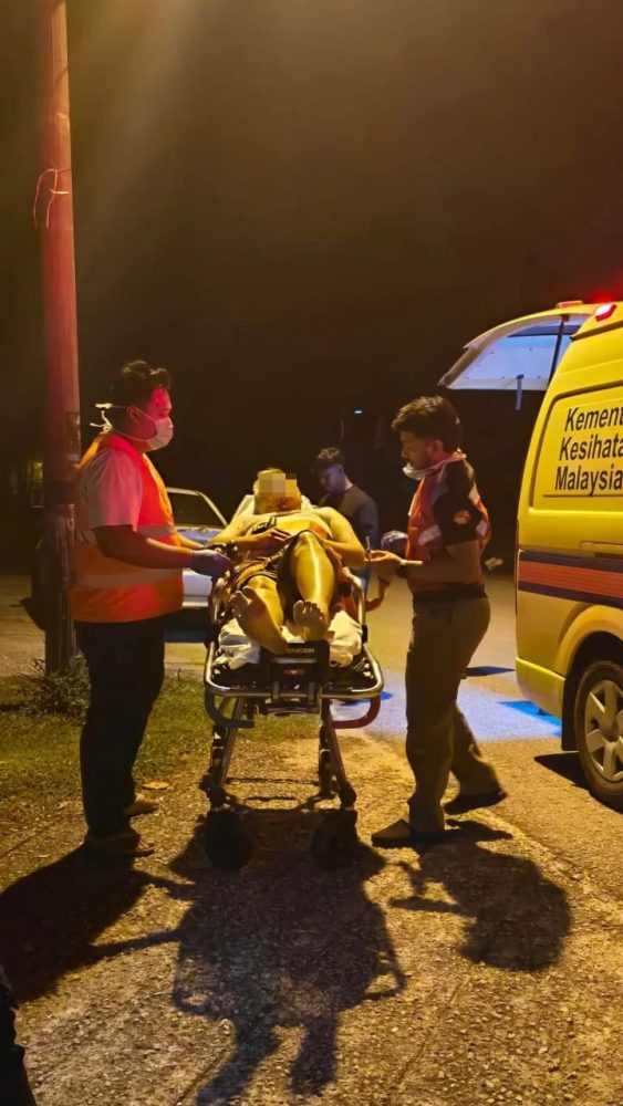 一段在网络疯传的视频显示,一名华裔男子头部鲜血直流、面色苍白,神情惊恐地蹲在漆黑甘榜的草丛旁,显然伤势严重。现场画面可见,医护人员正在为他紧急包扎,警方亦已赶抵现场展开调查。