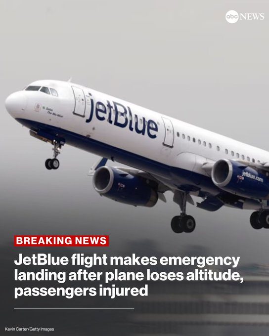 美国捷蓝航空一架客机在飞行途中突发紧急状况——飞机高度骤降,机舱瞬间陷入混乱!机上乘客被猛烈震飞,行李散落一地,至少15人受伤,其中一人疑似头部撕裂、血流不止。
