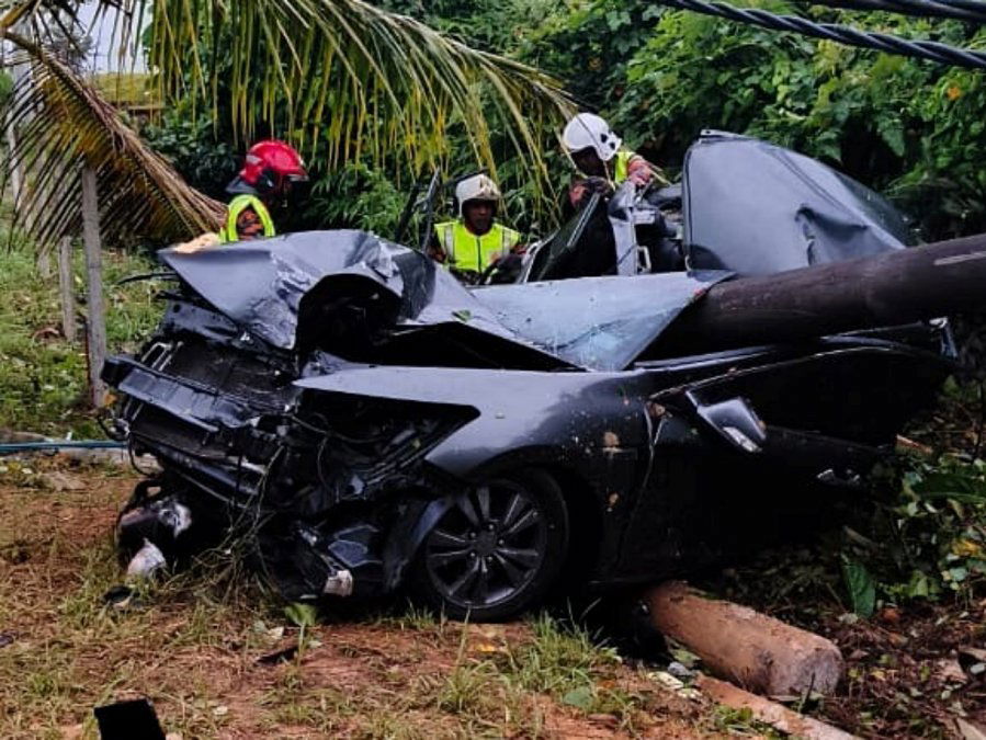 霹雳州玲珑今早发生一起致命车祸,一辆本田雅阁疑因失控猛撞电线杆后坠入山坡,车内一名28岁巫裔男子当场身亡。
