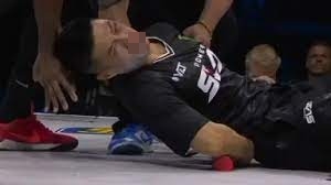根据外媒报道,赵鸿刚此次对战哈萨克选手阿曼塔耶夫(Muhammad Amantaev),比赛规则要求他作为后手,需先承受对手一掌。开赛仅第一轮,阿曼塔耶夫的掌击便势如雷霆,伴随清脆声响,赵鸿刚的脸部瞬间偏斜、眼角爆血,现场观众惊呼连连。他虽然强忍剧痛尝试反击,但落点偏差、力道不足,未能造成任何实质威胁,气势明显被压制。