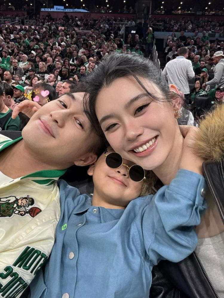 奚梦瑶在IG晒出生日现场照,并以英文写道:“祝我的小小儿子生日快乐,爸爸妈妈都非常爱你。”照片中,夫妻俩带着儿子现身美国NBA塞尔特人球馆——巧的是,何猷君早前刚成为塞尔特人股东之一。小广燊面对震耳欲聋的球赛现场,表现淡定又有台型,气场十足。