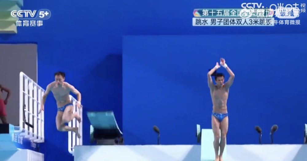 中国全运会跳水赛场今日再度引发热议。这次并非因奥运冠军全红婵的强势夺金,而是因为一场“零分惨剧”——山西队选手赵冬与陈敬炜在男子团体3米跳板比赛中出现严重失误,导致动作被判零分,成为本届全运会跳水项目的首个“0分跳”。