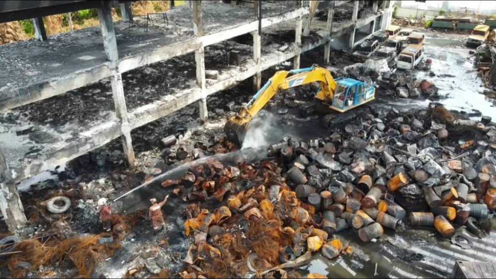 砂拉越晋连路9哩旧轮胎收集中心历经近一星期的火灾,终于在消防员昼夜奋战后全面扑灭。火势虽已熄灭,但起火原因及损失仍待调查。