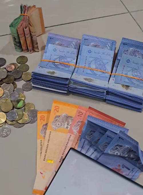 这名母亲在面子书上传视频分享这段“惊喜发现”,画面中她打开儿子旧书包右侧的拉链口袋,赫然发现里面塞满一叠叠钞票和硬币。仔细一数,从1令吉、5令吉到10令吉都有,几乎把整个隔层挤得鼓鼓的。