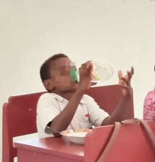 根据Instagram账号@abdi_bewok上传的短片,这名男孩在课堂午餐时间,从书包中拿出一个清洗过的洗碗液瓶,装满水后大口喝下,还贴心地与同学分享。老师拍下这幕感人画面后上传,没想到引起全国热议。