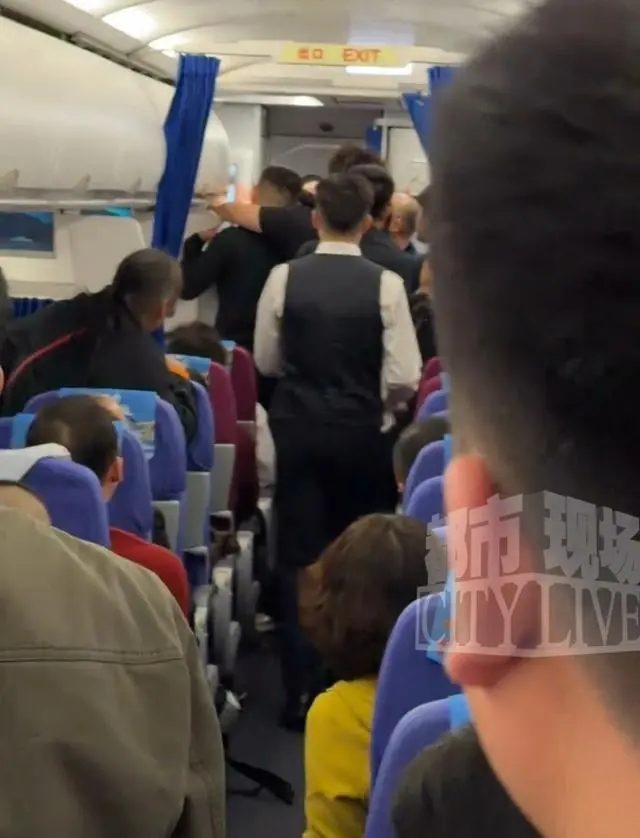 有网传视频显示,乘客们已登机,然而机舱内一名女子与机组人员发生争执。据拍摄者称:“一位孕妇超出月龄登机,机组多次劝说她下机,但她一直拒绝。僵持了一个半小时,直到警察到场,才最终将她劝下飞机。”