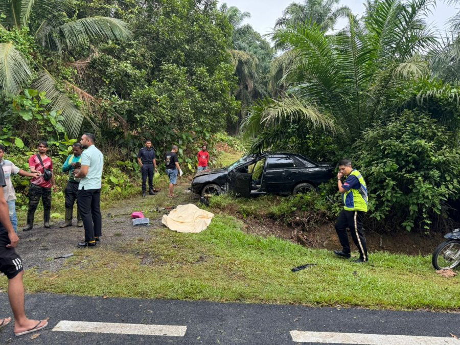 今天下午1时37分,发生在四湾路至哥打丁宜第52.5公里处的一起交通事故中,一名30岁的外籍割草工人不幸遭到一辆宝腾华嘉轿车撞击,导致头部和身体重伤,当场死亡。