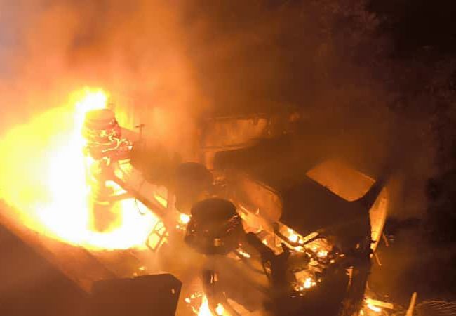 霹雳州消拯局主任拿督莎雅妮发表声明指出,涉事罗厘载运蔬菜,疑因失控冲出路面后翻覆,引发猛烈火势。
