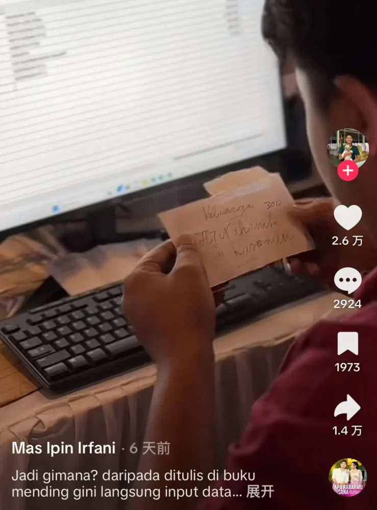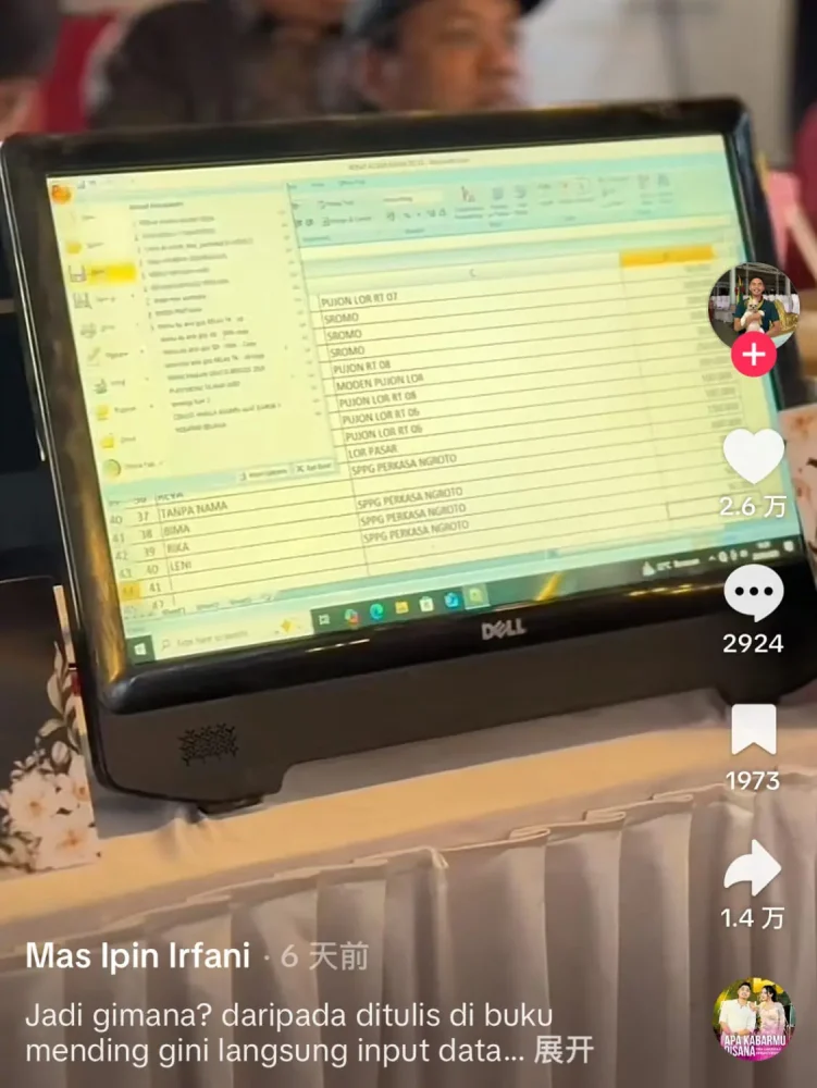 印尼 Kota Batu 一场婚礼近日引发热议,新人竟当众用 Excel 记录并展示宾客的红包金额(salam kaut)。