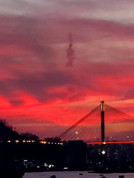 热带气旋“凤凰”于周日(9日)进入南中国海东北部后,香港上空傍晚惊现奇异景象——天空被染成紫红,一条宛如“飞龙”盘旋云间的彩色云带横跨天际,令市民纷纷驻足拍照,惊叹“飞龙在天”,更有人直呼是“吉兆降临”。