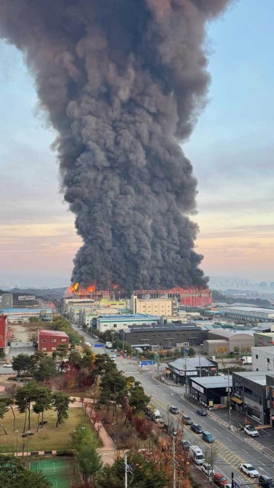 韩国忠清南道天安市的衣恋集团(E-LAND)大型物流中心周六(15日)清晨突发大火,整栋建筑被猛烈火势吞噬,黑烟直冲天际,景象十分惊悚。烈焰持续狂烧近10小时才被完全扑灭,所幸3名值班员工及时逃离,无人受伤。