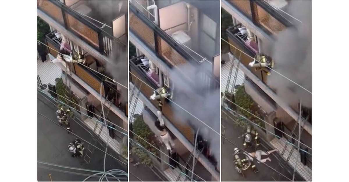 日本大阪市东淀川区相川一栋公寓近日发生火灾,起火房间的26岁女性住户在等待救援时疑因惊慌失措,将消防梯踢倒,导致消防员与自己从高处跌落受伤。
