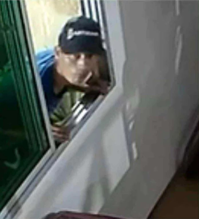 屋主今早起床后才发现煤气桶失踪,随即查看闭路电视,画面清晰拍到一名身穿蓝色上衣、戴黑帽的男子,在住家侧窗探头张望,行为可疑,随后悄悄将煤气桶搬走离开。