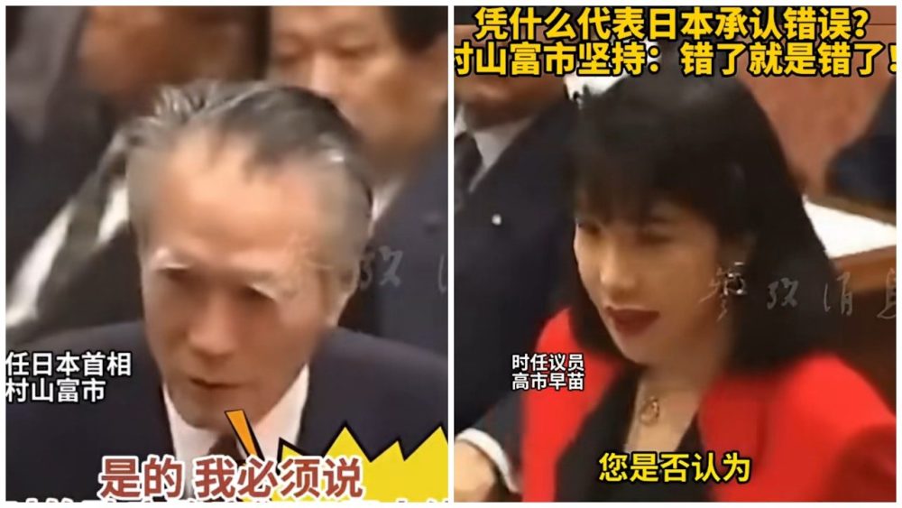 日本媒体近日曝光一段1994年的国会辩论视频,画面中,时任议员的高市早苗当面质问当时的日本首相村山富市:“你凭什么代表日本承认侵略战争是错误的?”此片段曝光后再次引发讨论。