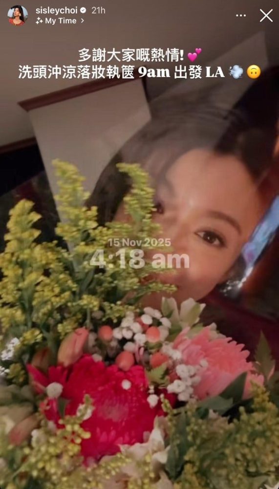 结束纽约场演出后,蔡思贝手捧花束在限时动态向粉丝致谢:“多谢大家嘅热情!洗头冲凉落妆执箧,9am 出发LA。”当时她发文的时间是凌晨4点18分,可见为了工作必须彻夜未眠,几乎起早贪黑,全力把握每一次表演机会,展现出强烈的拼劲与上进心。