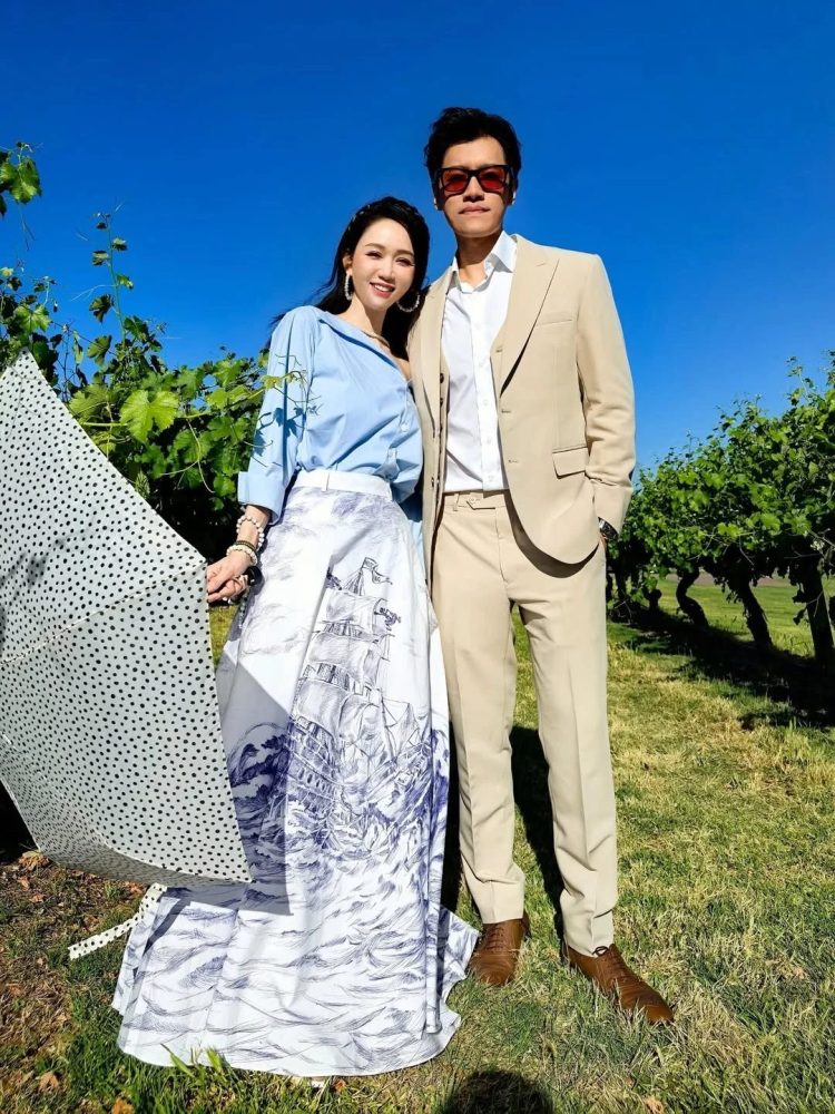 陈乔恩在社交平台晒出一系列美照,只见她穿着浅蓝色露肩上衣搭配印花长裙,发型精致、气质优雅又带点活力,在葡萄园中四处取景打卡,开心对镜自拍,整个人状态超好。她也与身穿西装的 Alan 在草地上甜蜜合照,夫妻俩站在一起宛如童话里的王子与公主。