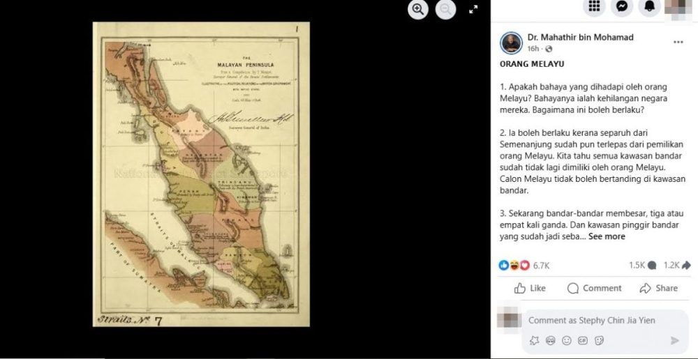 马哈迪也提到,马来人在土地与资产所有权上快速流失,导致经济与政治影响力同步下降。