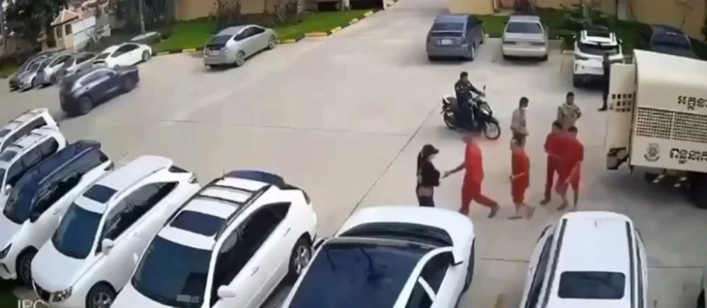 事发当天早上,警方押解多名涉网络赌博与诈骗的越南籍囚犯到斯昆省省法院受审。期间,一名穿着低调、戴着棒球帽的女子提前混入法院区域,在混乱中悄悄将一把手枪塞给自己的男友——其中一名被押解的囚犯。