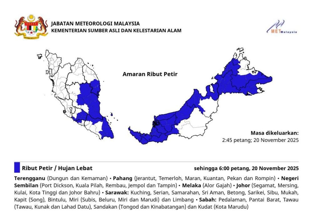 雷暴/豪雨预料持续至 2025年11月20日 下午6时