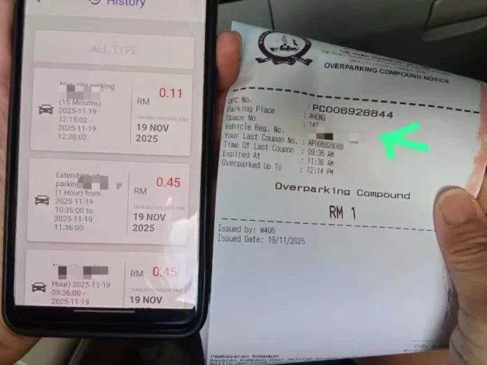 事主表示,当天她载送孩子后,把车停在鲁哇一带的超级市场附近。因时间接近中午,她在确认车辆停稳后,便立即在车内使用手机购买电子停车券。系统显示她在 12时15分 完成购票,但罚单上的时间却是 12时14分,两者仅差一分钟。