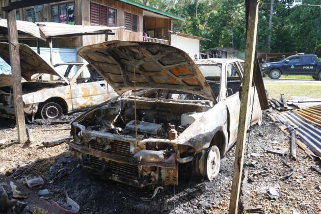 事件发生在凌晨2时20分,警方接获投报后与消防队赶抵莫拉伯现场,证实两辆汽车被大火烧毁,而嫌犯已逃离。警方随后在其住处展开搜查,起获一把长刀、一支散弹枪、10颗子弹及8个弹壳。嫌犯的尿检亦呈安非他命阳性。