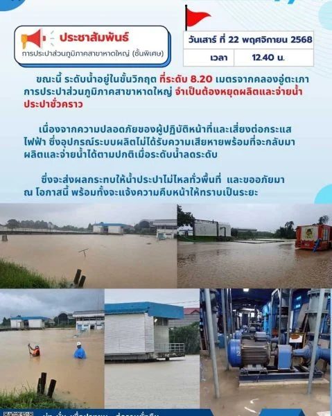 自来水局强调,这一措施将导致整个合艾地区全面停水,但这是为了保护设备免于完全损坏的必要决定。官方表示,一旦水位回落并安全可操作,供水将尽快恢复,届时会发布新的通告。