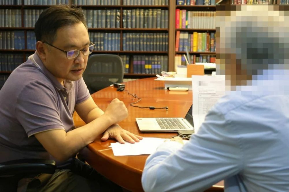 砂行动党主席兼国州议员张健仁今日在其律师事务所会见这名老妇,听完整个受骗经过。老妇在叙述时多次情绪失控、哽咽落泪,场面令人心酸。