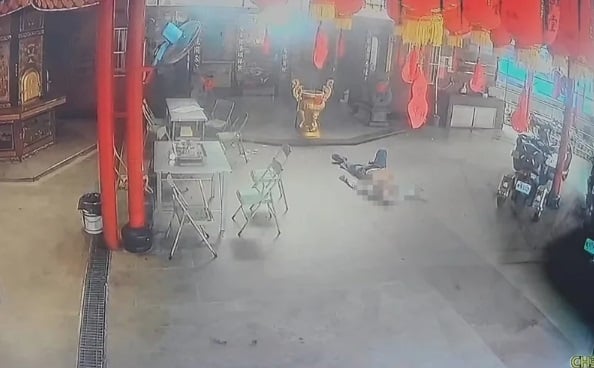 宫庙监视器拍下整个过程,只见男子拜拜结束后,疑似点燃胸口位置的引信,随后身上捆绑的鞭炮突然爆炸,火光四射,他当场被炸倒。附近居民听到巨响赶来查看,立即报警求助。