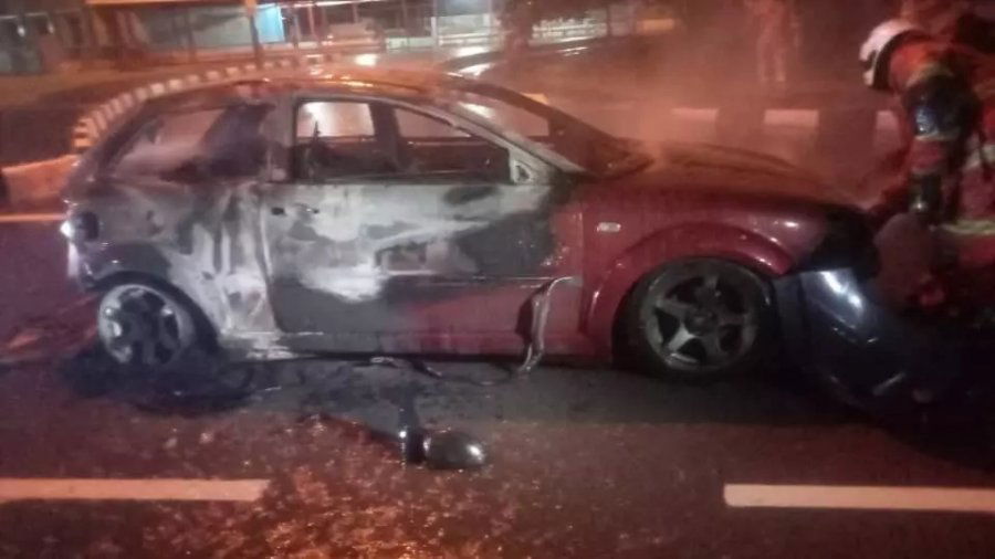 美里消拯局在凌晨3时39分接获通报,立即派队赶往现场。抵达时,轿车已被烈火全面吞噬,消防员迅速展开灭火行动。