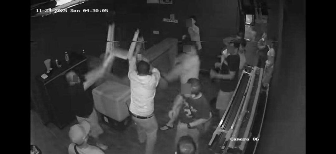 网络流传的闭路电视画面长达1分26秒,可见事件发生在凌晨4时29分,多名男子突然在酒廊内爆发激烈争执,随后扭打至柜台前。期间,有人抄起椅子及箱子猛砸一名身穿深色衣服的男子。