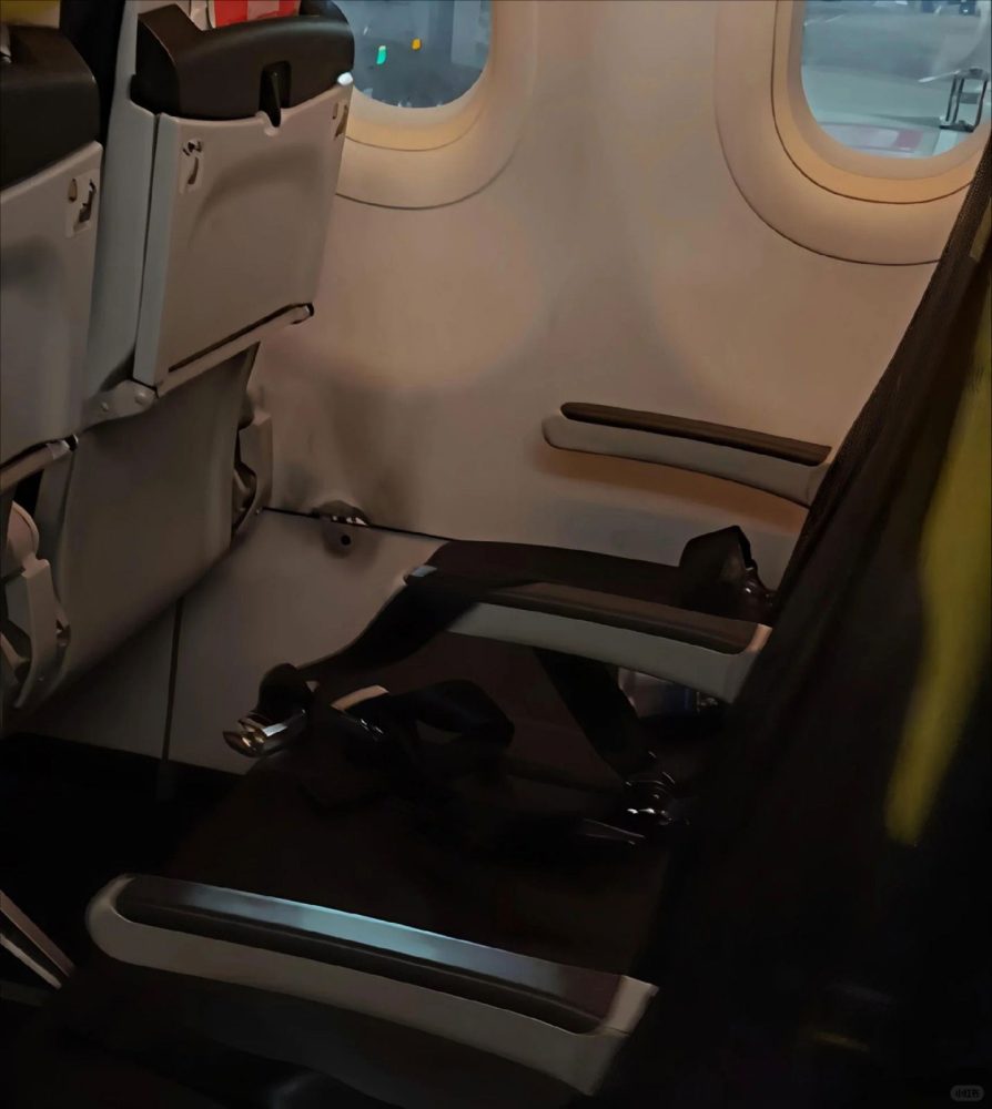 一名小红书用户 JaneZmmm 上传的视频显示,数名酷航空服人员聚集在机舱前方走道处理状况,周围乘客则保持冷静,留在座位观察。