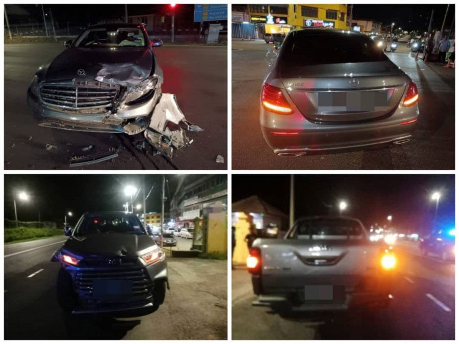 事故发生于昨晚约11时30分,地点位于马口-爪西路第1公里处,靠近马口益美花园(Taman ACBE)。涉及车辆包括一辆Mercedes-Benz轿车及一辆Vigus品牌的皮卡车。