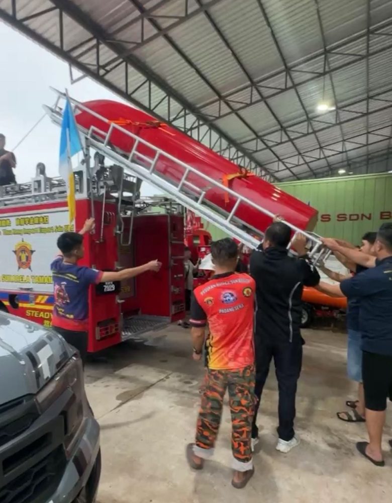 双溪大年义消队主席梁明达在面子书直播中透露,队员已把随行携带的救援船及物资全部运抵运输公司,目前正加紧将装备搬上罗厘,以便第一时间出发。