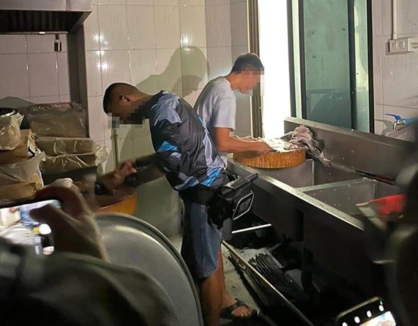 网络流传的求助视频显示,两名疑似大马男子在酒店厨房分工合作,一人切鱼、一人准备配料,煮出一大锅鱼粥,让同样受困的同乡得以止饥。