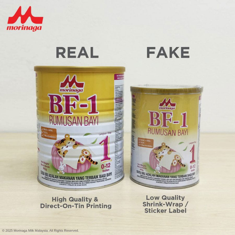真正的 Morinaga BF-1 及 BF-2 仅提供 900 克罐装与 700 克盒装。