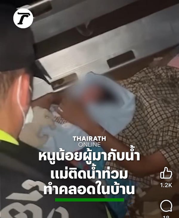 泰南洪灾持续蔓延,一名即将临盆的孕妇因洪水阻断道路,无法及时前往医院,最终被迫在家中分娩,所幸母子均安。