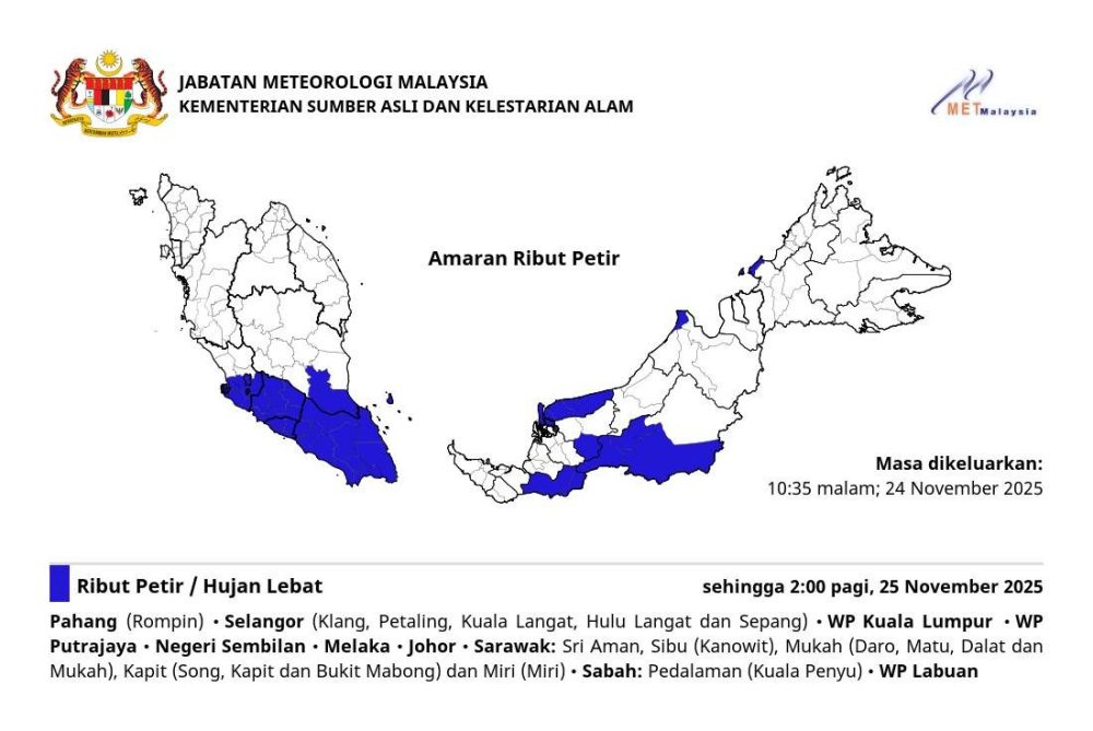 本次警告于 2025年11月24日晚10:35 发布。