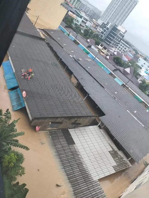 泰国南部连日遭遇强降雨侵袭,宋卡府合艾水灾周二进一步恶化。根据泰媒报道,合艾部分地区水位已涨至屋顶高度,部分区域水深更超过 3 公尺。
