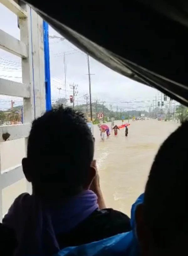 他回忆,当天一路雨势不停,但关口官员再三保证“不会淹水”,于是他们安心入境,没想到隔日合艾大水全面爆发,整个城市几乎瘫痪。