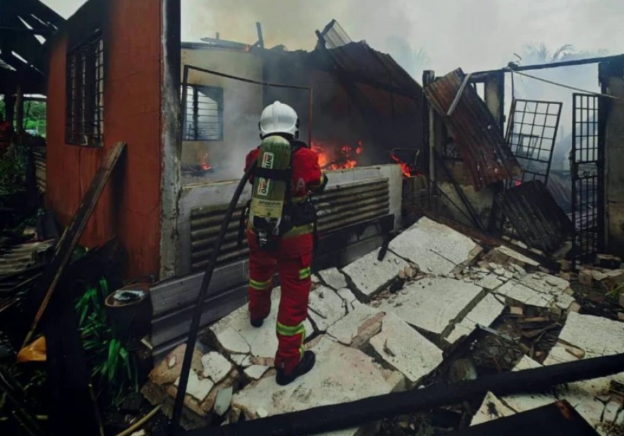 北根 Pulau Serai 甘榜峇鲁(Kampung Baru)一户老年夫妇与儿子外出吃早餐时,家中突发大火,返家后赫然发现整座房屋已被烧成废墟,所有家当化为灰烬,瞬间一无所有!