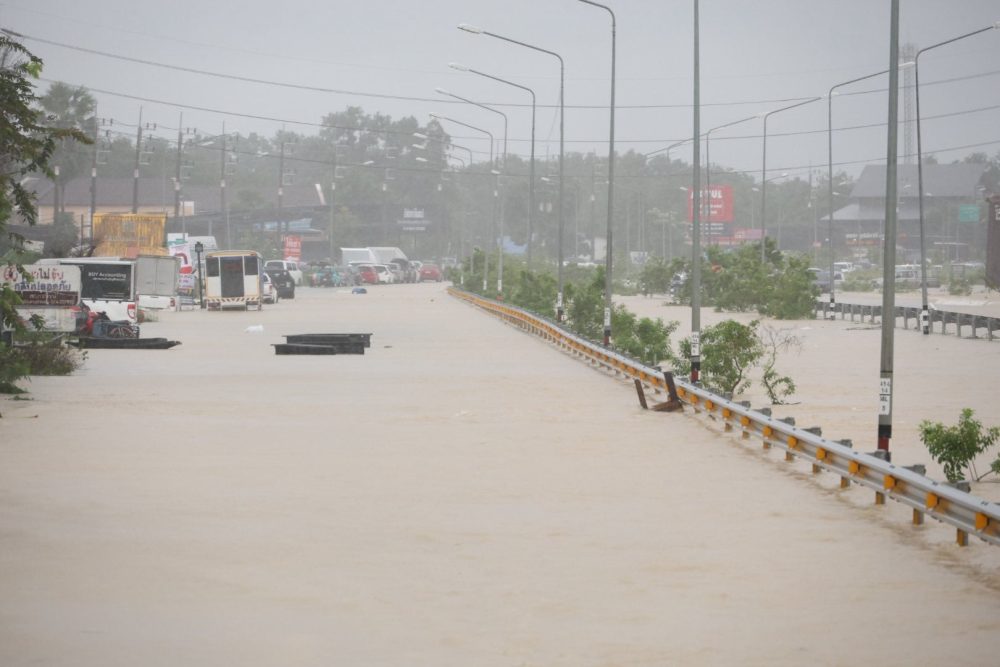 在南部,合艾县等地由于强降雨导致大范围水灾,灾情同样恶化。截至11月24日,南部已有10个府受灾,包括素叻、甲米、洛坤、董里、博他仑、沙墩、宋卡、北大年、也拉和陶公等地,波及92个县、581个镇、4,146个村庄,影响约191万人,71.9万户家庭受到不同程度的损失。