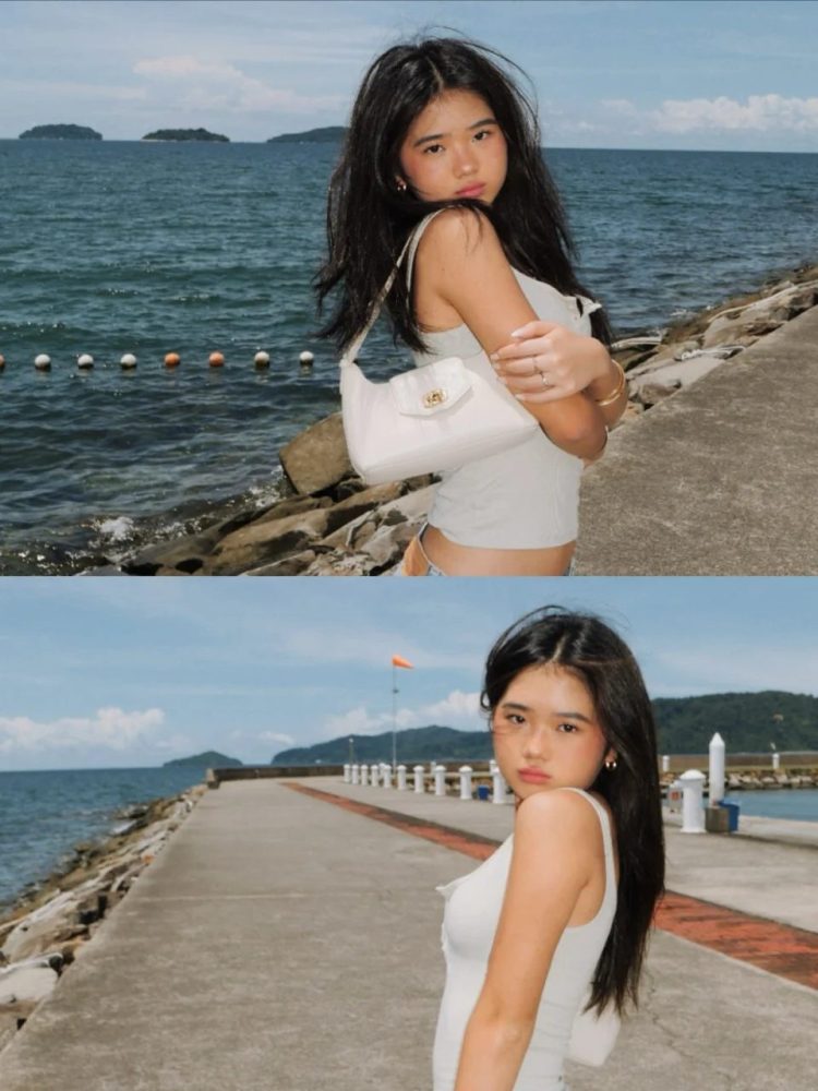 吴速玲在IG上传与Grace互拍的照片,只见Grace已褪去儿时稚气,白色背心搭牛仔裤、耳环与白包点缀,妆容自然又精致,举手投足尽是少女感与仙气。
