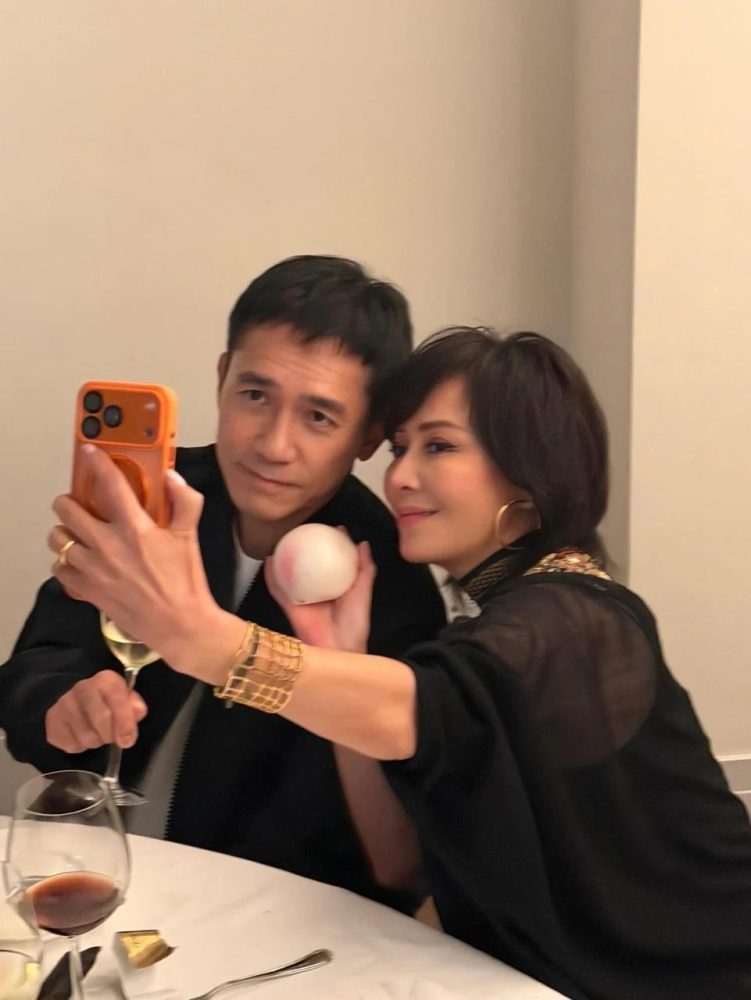刘嘉玲24日在IG公开数张庆生照,可见她作为忠实Labubu迷,好友特意订制一个巨型Labubu造型蛋糕,蛋糕上写着“HAPPY BIRTHDAY +0”,寓意“永远年轻”。桌上摆着寿桃包、红酒与香槟整齐排开,气氛温馨热闹。照片中最吸睛一幕,便是刘嘉玲拿起寿桃与梁朝伟头贴头合照,小小互动甜度满分,夫妻感情稳定如昔。